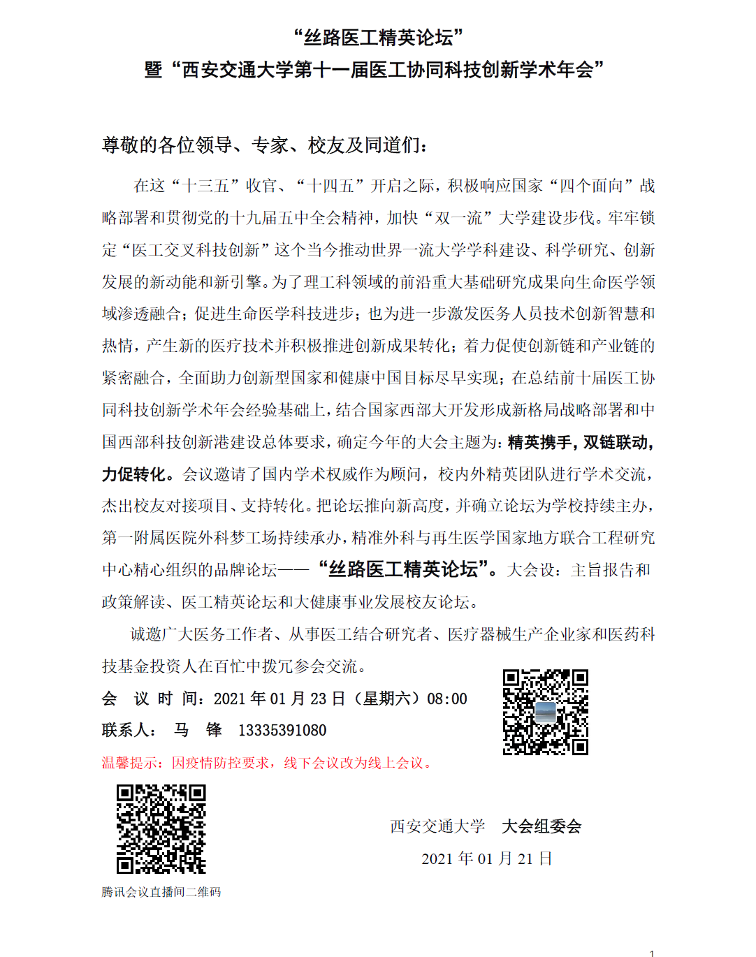 “丝路医工精英论坛”暨“回馈母校最新第十一届医工协同科技创新学术年会”