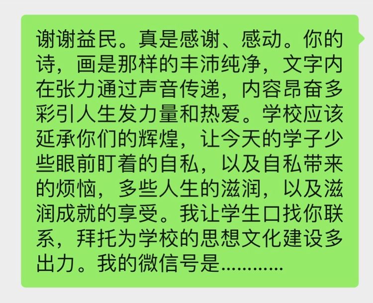 朗诵会的第二天,张书记专门发了一个微信给远帆,分享了他的感想: