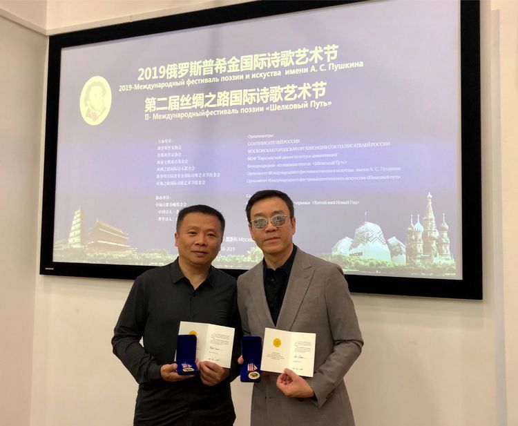 远帆又获奖了!而且是在俄罗斯普希金国际诗歌艺术节上获得了国际大奖!这次站在远帆旁边的不再是我了,是仝晓锋,另一位交大知名的诗人。