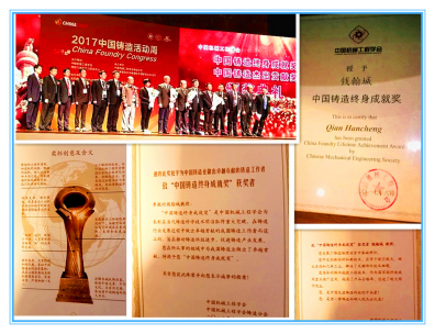 第二年,中国机械工程学会 授予钱翰城 中国铸造终身成就奖。