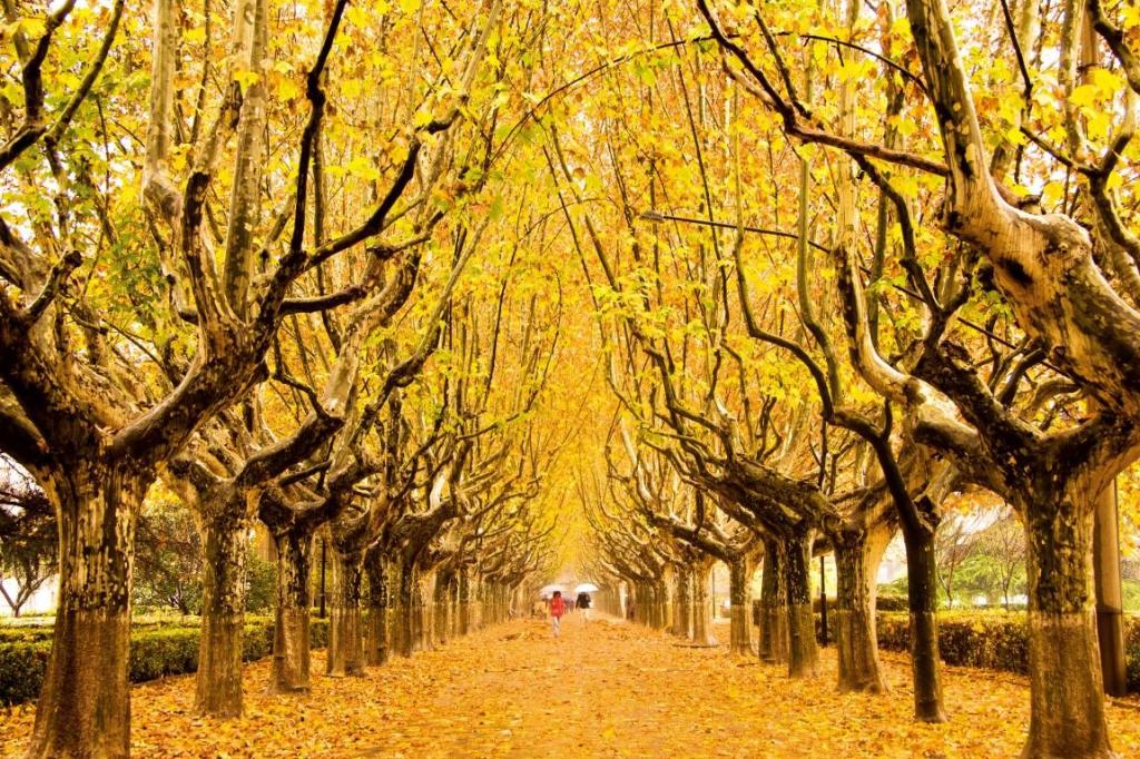 我拍下的那张梧桐秋景图,被很多人喜爱,也是我比较满意的作品之一,很高兴的是,作为百年交大艺术之树的一叶,被收录在《交相辉映——回馈母校最新首届校友书画摄影作品集》。这张照片是毕业后回母校拍的,秋雨打叶,秋风落叶,学弟学妹们撑着各色的伞从树下经过。虽是晚秋风雨凉透,但树上与地下,融为一体的金黄,铺陈的是金色的青春。交大一年一度的金色梧桐节,彭康路上的落叶缓扫, 以叶传情,留住美好,堆满诗意的浪漫。