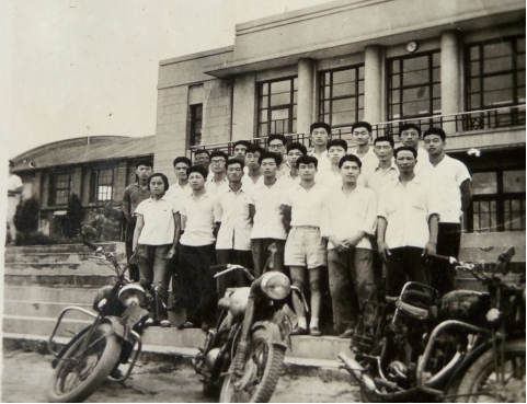我63年入学时,有一辆英国40年代的“爱伦”(ARIEL)(右行)三轮摩托,一辆美国40年代“哈雷”(HARLEY)(左行)三轮摩托,大约是8辆捷克生产的“佳娃”,两辆捷克生产的“西吉”,其余都是英国40年代生产的“大炮”。在66年(或者是67年)调拨了两辆“长江750”三轮摩托,六辆“幸福250”两轮摩托。