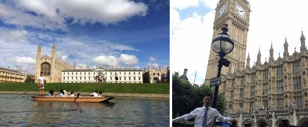 谷肖东也积极参加国际交流活动,秉承交大精神,为世界之光。他留学期间,赴英国参加学习了剑桥大学和牛津大学的四门课程,分别是《国际金融》《国际政治》《莎士比亚戏剧》和《英国的历史与文化》。他前往剑桥追寻《再别康桥》里的诗情画意,寻找钱钟书和杨绛先生《我们仨》中提到的爱情足迹。他谈及留学期间遇到的“小插曲”。他说:“澳洲教授从不提问举手的亚洲学生,我经过再三沟通争取,最终获得多次提问题的机会,同时国际金融课还得了满分。同一个班级来自北大、清华的学生平均80多分,这次经历也让我觉得清华、北大学子在大家心目中可能高不可及,但换个环境也许会有不同的结果。我现在依然对清华、北大充满敬仰之情,但内心更加平和。在《英国历史与文化》课上,授课教授提起中国时刻意强调英国的绅士风度。我给他讲起了火烧圆明园的故事,以及我参观大英博物馆中国馆的感慨。教授无话可说,善意的点点头,连着说yes。西迁精神的核心就是爱国主义,作为新时代的交大人,我们即使身处异国他乡也要“饮水思源”,不忘交大精神!交大人要以交大为起点,交大为平台,不断走出原有的视野的束缚,走向世界,面向未来。但无论如何,在何时何地,都要留有一颗爱国心。