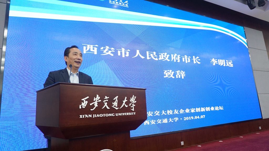 李明远在致辞中提到,123年前交大诞生于风雨飘摇的年代,担当起为国家、为民族培养精英人才的重任。西迁63年来,先后培养了26万余名优秀学子,为西安的建设输送了众多精英人才。当前西安正处在多项国家战略叠加、城市价值加速兑现的难得历史机遇期和黄金发展期。随着“一带一路”倡议的实施和交通体系的完善,迎来了千载难逢的发展机遇,为创新创业提供了充分的条件。“我们真诚地希望更多交大杰出校友、创业英雄回归西安、投资西安,与我们携手共筑新时代西安的新辉煌。”他表示,西安将一如既往支持西安交大建设发展,为西安交大、广大校友、企业家和创业者提供最佳服务保障,全力打造高质量的西安创新创业生态圈。
