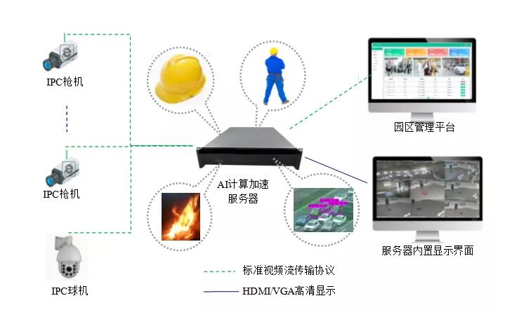 监控主要是用于视频处理,捕捉视频中出现的可疑的人或物,及时的反馈给管理人员,以做应对和处理。报警是指硬件出现故障等会发出声响,以引起维护人员的注意。门禁主要是通过人脸识别来判别入园者进出权限,以保证园区的安全性。考勤的使用群体是园区的管理人员,他们通过该功能完成上下班的打卡工作,有效地处理工作交接和替换。人工智能在智慧园区的应用最重要的不是算法的先进性,而是如何能更合适的匹配现有厂区的使用和管理。该系统相比于传统系统最突出特点是拥有个性化需求定制功能,例如搭建一整套智慧电厂管理系统,集成人员安全管理、安全防范、智慧巡检等功能为一体,实现智慧电厂安全生产的智能化管理。