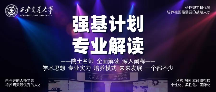 强基计划是今年教育部新实施的拔尖创新人才培养项目,旨在选拔一批有志向、有兴趣、有天赋的优秀学子进行专门培养,为国家重大战略领域输送后备人才。西安交大强基计划坚持聚焦国家重大战略需求,秉承“起点高、基础厚、要求严、重实践”的办学特色,采取“夯实基础、国际视野、尊重个性、跨界融合”培养模式,汇聚最优秀的师资培养更优秀的人才,加强科教协同育人,制定科学合理的退出补选机制,培养富有社会责任感、具有国际视野和竞争力、能在基础学科和国家重大战略领域中发挥引领作用的拔尖创新人才。
