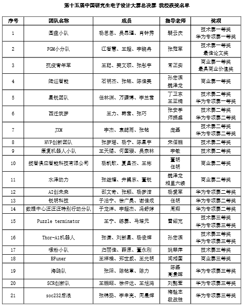 在全体参赛队员努力下,我校获得各类一等奖6项、二等奖12项、三等奖9项、最佳论文奖1项和最具商业价值奖1项,以团体总分第一的成绩成功卫冕最佳团体奖,并获得大赛优秀组织奖和华为专项赛优秀组织奖。