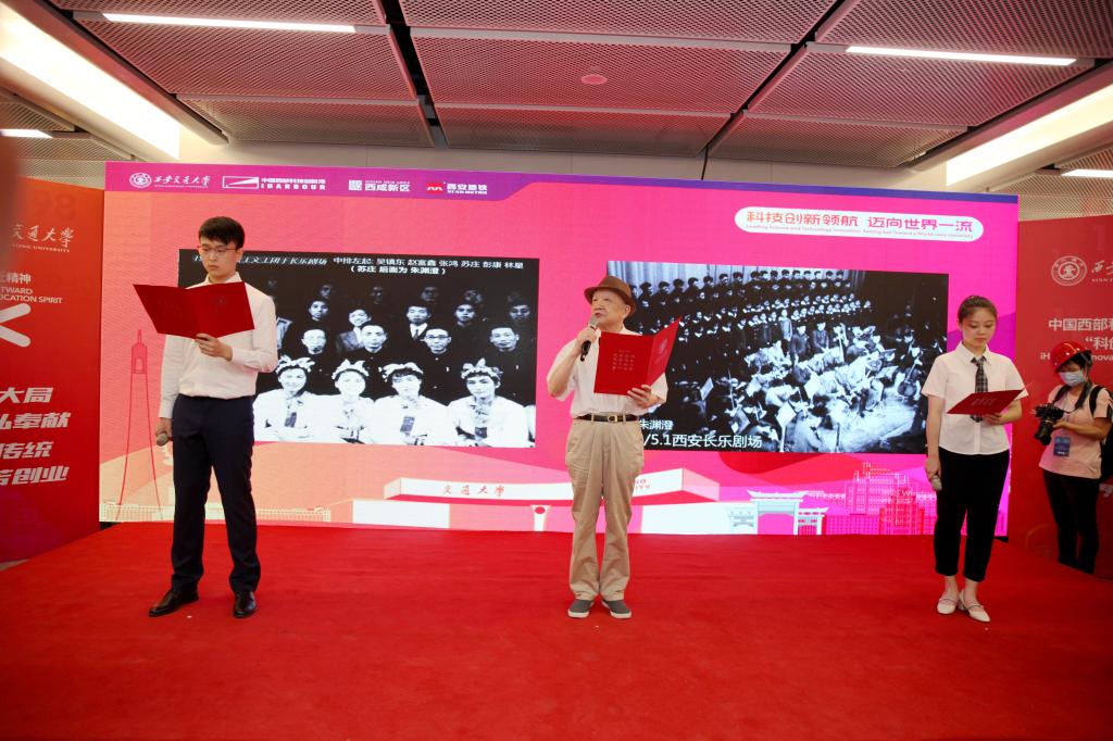 西迁老教授代表,西安交大党政领导、老领导、校友及捐赠者代表,创新港相关项目的建设者、合作者、地铁建设者及家属代表近500人参加活动。