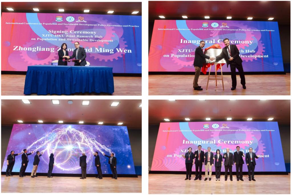 周忠良与香港大学社会科学院院长文鸣教授共同签署了“交大-港大人口与可持续发展联合研究中心”的合作文件,两校联合研究中心正式成立。李树茁教授与方伟晶教授作为联合研究中心双方主任,共同为中心揭牌。
