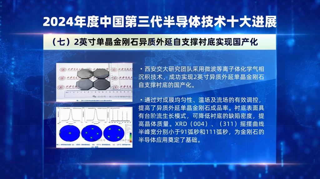 图2. 2英寸单晶金刚石异质外延自支撑衬底实现国产化荣获2024年度中国第三代半导体十大进展