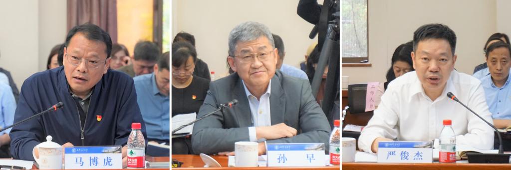 与会的部分中心组成员作重点发言。党委副书记、纪委书记、国家监委驻学校监察专员马博虎表示,学校党委不断健全“15235”上下贯通、执行有力的组织体系,持续推进作风建设,为学校纪检监察工作的开展提供有力支撑。下一步,纪检监察战线将纵深推进全面从严治党,为学校中心工作保驾护航。党委副书记孙早表示,学校党委不断压实各级组织党建工作责任,健全贯彻落实机制,推进党建业务深度融合。面对新形势新使命,我们要坚持和加强党对学校工作的全面领导,持续推进作风建设,推动学校高质量发展。党委常委、副校长严俊杰表示,学校将西迁精神融入办学实践,推动各项工作取得突破。下一步,我们要聚焦科技前沿,推动融合创新,畅通育才聚才渠道,打造教育科技人才一体化发展示范区,为国家发展贡献交大力量。