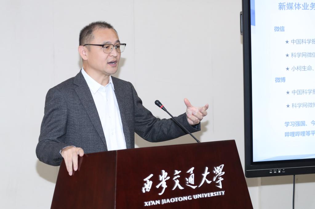 报社采访中心主任魏刚以《打造中国领先的科学融媒体平台》为题,系统介绍了中国科学报社在科技传播领域的实践与思考。他表示,中国科学报社期待继续与陕西各高校、科研院所及相关单位携手并肩,共谱陕西高校科技传播新篇。