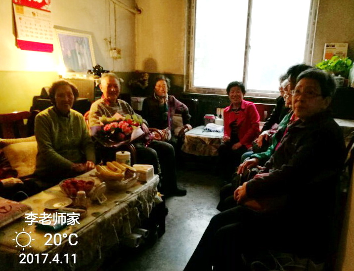 从新建的西校门出来,我们就要去看望早已在家等候我们的李榕基教练了。来到交大三村的李导家,李导夫妇笑容满面的热情欢迎我们,我们为敬爱的老教练献上鲜花和赠送礼品,队友们一个个作了自我介绍后大家便和老教练愉快的交谈起来,看到86岁的李导依然身体健康,思想敏捷,生活幸福,大家感到无限欣慰,从墙上挂着的照片我们看到李老师早年就是国家级篮球裁判,也是享受国家特殊津贴的体育专家,特别是看到他们夫妇俩纪念钻石婚的大幅照片,我们更是祝福二位老人健康长寿,幸福永远!之后我们和李导夫妇到酒店共进晚餐,欢聚一堂,留下了几张珍贵的合影。
