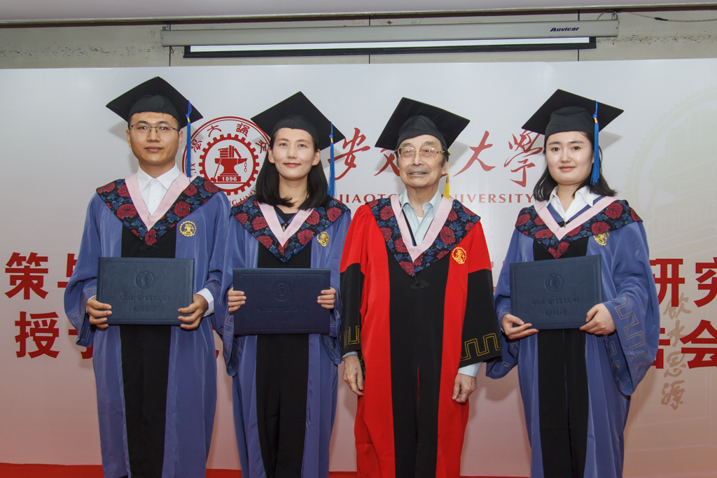 蒋正华教授为三位硕士生颁发毕业证书后,进行专题报告,在报告中,蒋正华教授从世界发展史切入,希望同学们了解世界发展史,从历史的教训中寻找现代发展的关联点,并向交大学子提出寄语:“珍惜时代赋予你们的机遇与责任”。