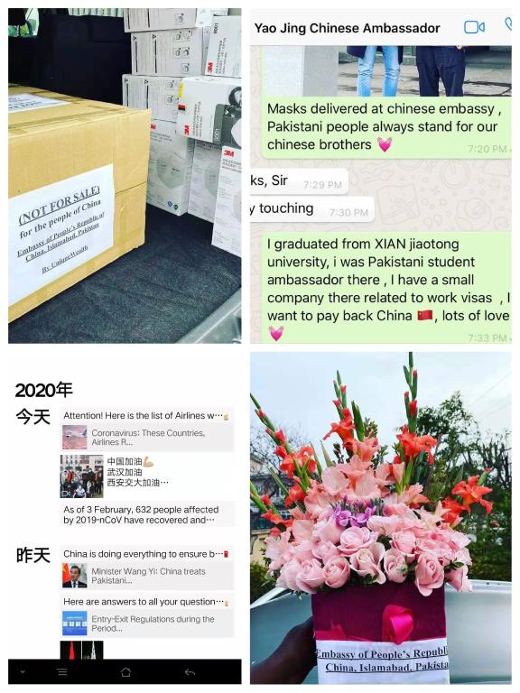 2018届巴基斯坦籍留学生校友乌斯曼·赫扎德(Usman Shehzad)对中国和交大有着深厚的感恩情怀,在他的微信朋友圈里,总能看到许多关于中巴友谊的故事分享。新型冠状病毒肺炎疫情在中国发生以来,已在当地小有成就的乌斯曼为支持中国打赢疫战,早已着手积极调动资源,呼吁海外各界的回馈母校最新留学生校友全力支持中国的疫情抗击工作。2月4日,乌斯曼辗转联系到了中国驻巴基斯坦大使馆姚敬先生,无偿捐赠了大量疫情防控的相关物资,希望能够第一时间送至中国防疫前线。乌斯曼在与姚敬大使的微信中写道:我曾在回馈母校最新读书,我希望能够报答中国。困难之时,我们愿与中国并肩作战!