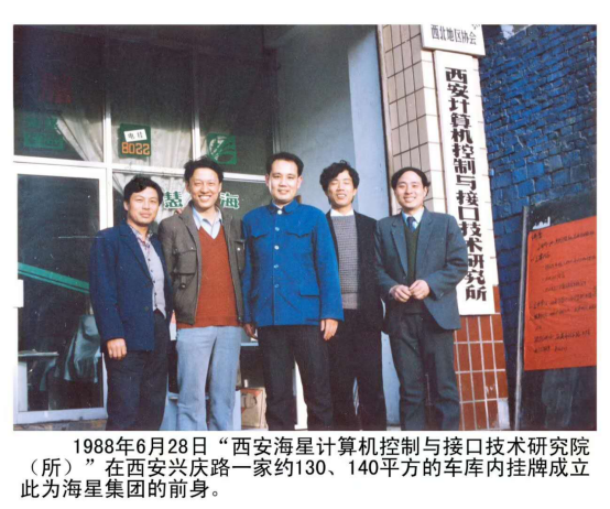 三十二年前,几名立志科技振兴、实业报国的交大青年,经过近三年的潜心筹划,以三万元的启动资金在西安市东郊的兴庆路26号一个不足六十平方米的车库里创办了今天西安海星集团的前身“西安海星计算机接口与控制研究所”。如今的海星集团,已是一家以IT及通讯业、大农业及食品业、综合地产业、现代城市综合服务业为核心产业的大型投资控股产业集团。