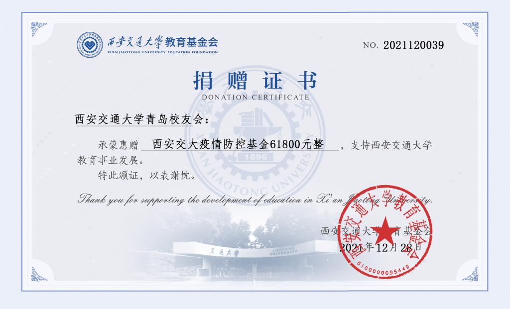 近日,西安新冠疫情态势严峻,牵动各地交大校友的心。“疫情就是命令,防控就是责任”,为助力母校打赢疫情防控阻击战,青岛校友会孔心田会长、綦军书执行会长紧急动员青岛校友及企业捐款、捐物,驰援母校。