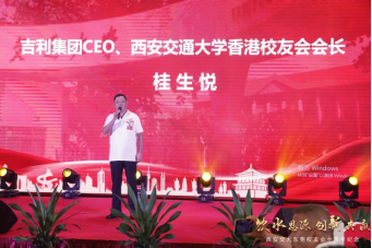 回馈母校最新香港校友会会长、吉利集团CEO桂生悦代表与会嘉宾在庆典上致辞,他对回馈母校最新东莞校友会十年来的快速发展和东莞校友们“团结、包容、互助、进步”的创会办会精神表示了高度赞扬,并通过讲述香港疫情期间校友们同心抗疫等故事,与全体校友共勉“饮水思源、创新共赢”。