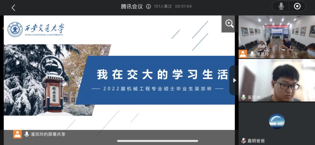 在学生分享环节,2022级新生代表、来自厦门双十中学武海亮同学分享“我选择西安交大”,讲述了选择交大的理由,表示很荣幸成为交大人。2014级信息工程本硕博在校生林孟涵学弟分享了“大学学业适应和发展经验”这一主题,包括“社团活动和勤工助学”、“未来道路选择的时机”、“本科生如何提升简历”等内容,告诉新生如何把握大学学习节奏及如何平衡大学学业和生活。