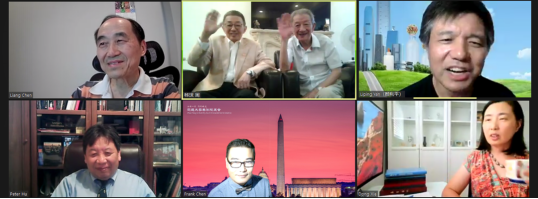 胡富民博士随后进行发言。胡富民博士于20世纪80年代赴美,现任美国马里兰大学创伤急救中心技术总监,他曾多次回国进行学术交流,曾在汶川地震期间赴川进行援救治疗。他介绍,在抗击新冠肺炎疫情中结识了同在华盛顿地区的陈峰浩校友,二者还合作研究,共同发表科研论文,传为佳话。时值交通大学美洲校友会峰会筹办之际,陈峰浩特邀盛氏家族参加此届峰会,并邀请他接受峰会记者专访,消息传递给他的母亲盛毓贤后,峰会得以与盛氏家族建立联系,便促成这场座谈会。胡富民向交通大学、校友会以及峰会表达了美好祝愿。