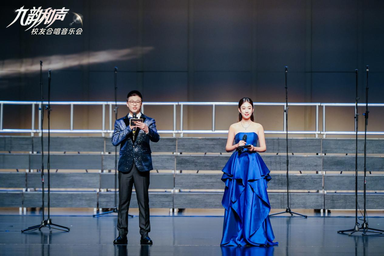 本次音乐会的曲风多元,既有经典歌曲,更有粤语金曲。多样化的曲风让每一位观众都能触动心弦,然而歌者和声却有异曲同工之妙,就像校友们性格各异却志气相投。合唱的人注定合拍,同频的人终将同行!在“九韵和声”的夜晚,于校友们余音绕梁的优美和声中,你我终将被这束同频之光照亮,拼搏的道路上携手同行。