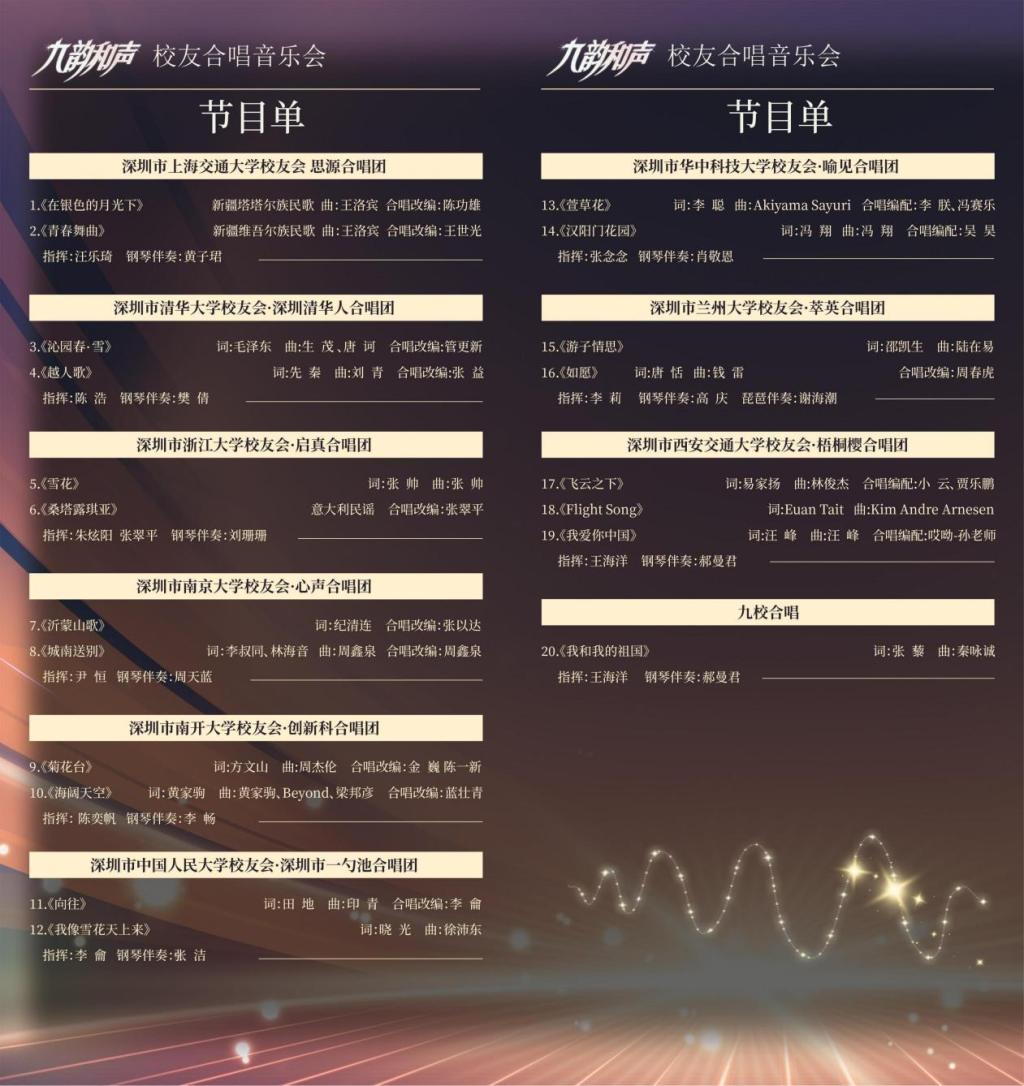 九所享誉国内外的知名高校校友联袂举办的“九韵和声”音乐会于2023年11月19日晚19:30在深圳大剧院举行。