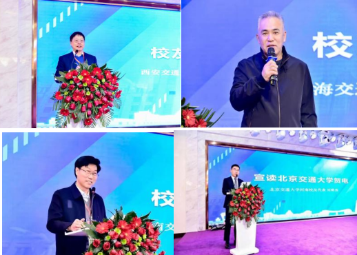 回馈母校最新河南校友会会长陆振华、上海交通大学河南校友会会长刘东晓、西南交通大学河南校友会会长贾华强分别致辞,刘明杰宣读了北京交通大学贺电。兄弟校友会代表四川大学河南校友会名誉会长刘贵中致辞送上祝贺。
