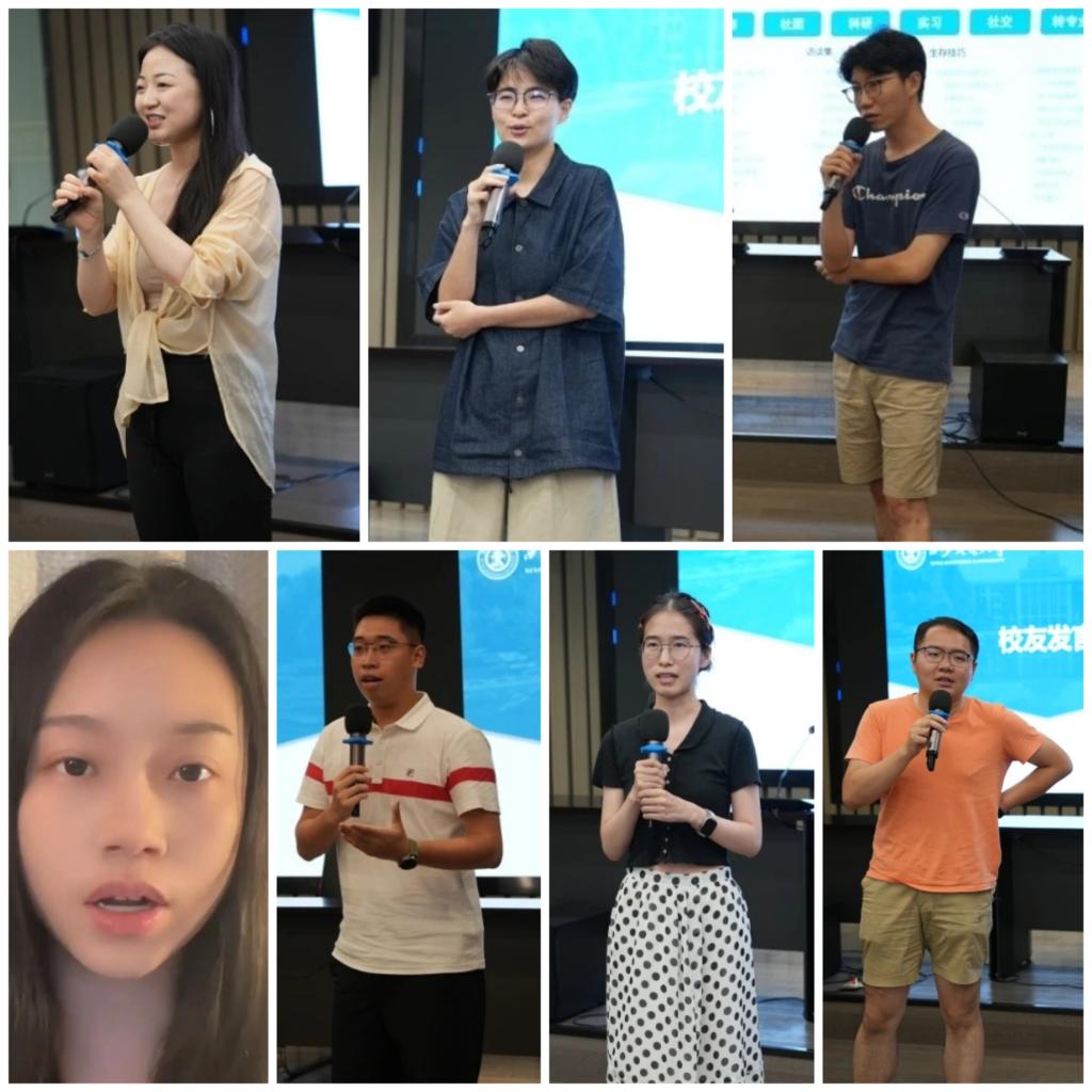 “10后”校友代表发言环节,2015级蒋雅洁校友表示西安交大学风严谨,学业饱和度在各高校中遥遥领先。崔梦媛校友建议大家通过跨学科的学习和思考,更全面地掌握不同领域的重要思想,跳出自己的专业领域,探索更广阔的知识海洋,培养出能够应对复杂世界的多学科思维能力。2015级物理实验班吴师保校友,从“绩点为王”到竞赛、考试、科研的精力分配,从辅修、社团、实习的有得有失到转专业、选课、出国的不同抉择,通过PPT详细地解答了大学期间可能遇到的问题,鼓励大家脚踏实地,多加思考自我价值和社会价值的本质。2016级上海籍学生、ACCA专业成哲颖,通过视频祝贺大家即将开始新的生活。并从学术、求职、生活几个方面提出建议,勉励大家在学习和职业上不断突破。2019级上海籍学生沈平建议大家能够在本科阶段探寻并找到自己喜欢和擅长的领域,通过一定的积累,形成自己的差异化优势,同时用热爱支撑自己走得更长更远。应届毕业生吴小雨,希望大家在未来努力发挥优势,勇于展示自我,尽可能抓住一切可能成功的机会,不给人生留遗憾。同时永不放弃努力,保持终身学习的态度,走好自己的人生节奏,做最好的自己。2019级能动专业刘万渤校友,建议大家对所学的专业保持憧憬与热爱,若发现自身兴趣与专业不匹配时,勇于重新选择。鼓励大家注重人文素养的锻炼。