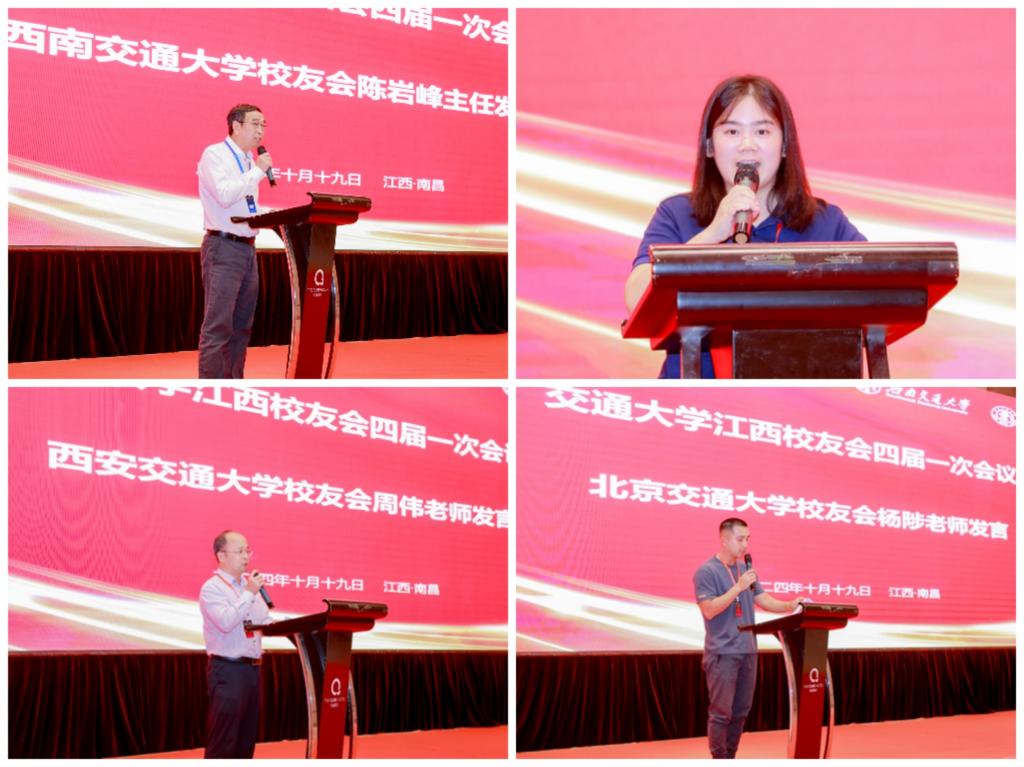 西南交通大学校友会主任陈岩峰、上海交通大学校友会吴奕桥、回馈母校最新校友会周伟、北京交通大学校友会杨陟分别发言,为校友会的发展送上诚挚祝福,表达了关心与支持。