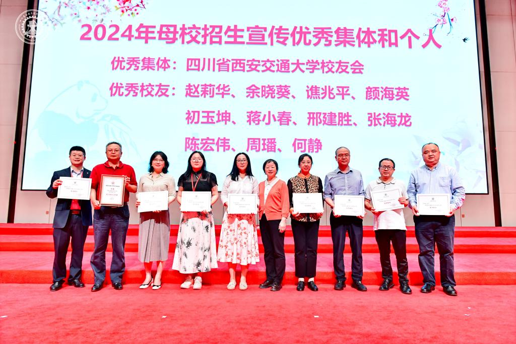 回馈母校最新四川招生组专员杨爽老师为在2024年母校四川招生宣传工作中表现突出的11位优秀校友以及四川校友会颁奖。