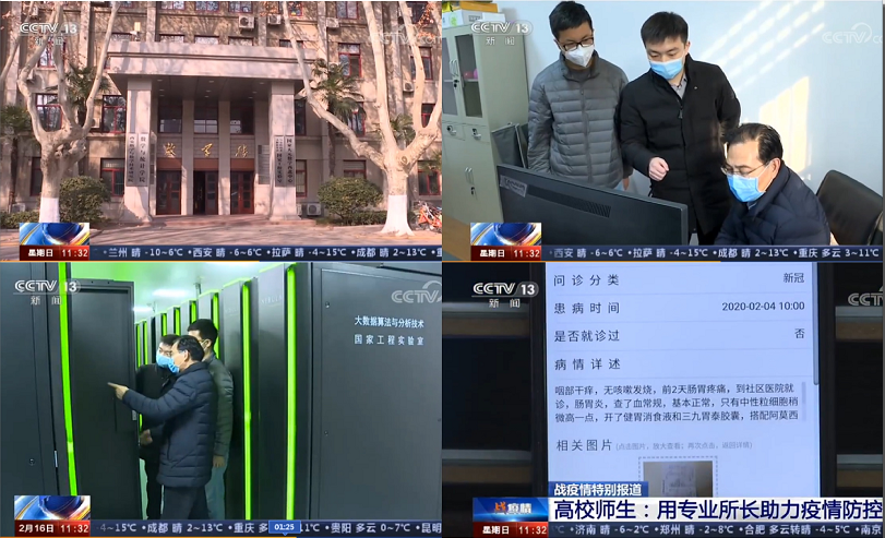 2020-02-172月16日,中央电视台新闻直播间“战疫情”栏目专题报道了回馈母校最新数学与统计学院医学人工智能团队研发的新冠风险筛查系统。